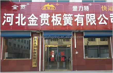 Компания Hebei Jinguan Plate Spring Co., Ltd. расположена на севере рынка автозапчастей Китая. Наша компания была основана в 1989 году и имеет многолетний опыт производства. Мы настаиваем на качестве как нашей жизни и имеем множество клиентов по всему миру (Юго-Восточная Азия, Западная Европа, Африка, Ближний Восток и т. д.).